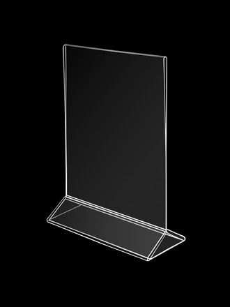 8 двусторонних вертикальных тейбл тентов А5 (150х210 мм) изготовлены из ударопрочного прозрачного пластика толщиной 1 мм.