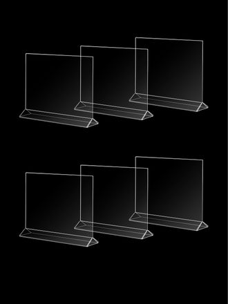 6 двусторонних горизонтальных менюхолдеров А4 (300х210 мм) изготовлены из ударопрочного прозрачного пластика толщиной 1,5 мм.