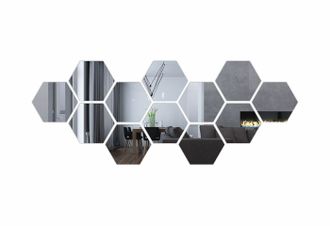 Декоративные зеркала самоклеящиеся, шестиугольники 125х108 мм, 12 шт.